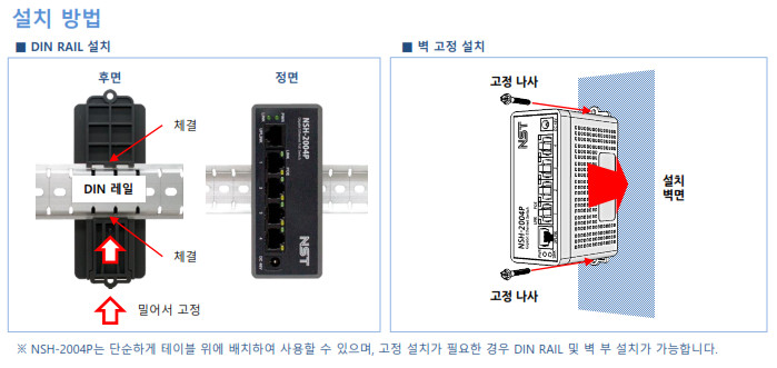 • Top방식 Wall Mount (벽 부 고정거치) 방식 • DIN RAIL Mount (DIN 레일 거치) 방식 지원