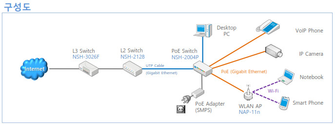 PWR, LINK(Uplink), LINK/POE (각 포트)