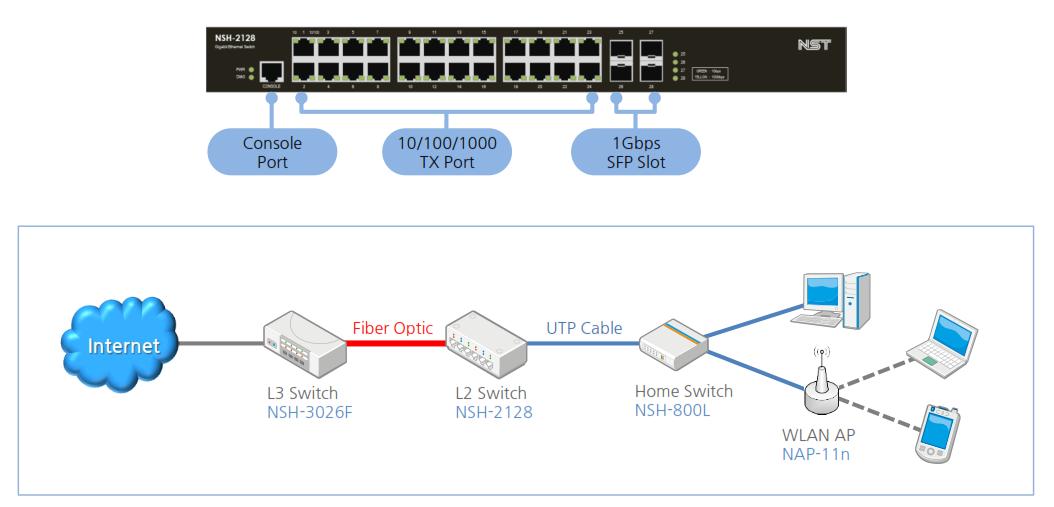 4 Ports 1000Base-X 또는 100Base-FX SFP Slot